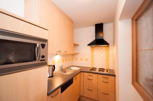This apartment's special feature is the sauna. This spacious apartment comprises 1 living room, 1 separate bedroom and 1 bathroom with a bath and a hairdryer. Guests can make meals in the kitchen that is equipped with a stovetop, a refrigerator, a dishwasher and kitchenware. Featuring a balcony with mountain views, this apartment also provides a coffee machine and a flat-screen TV with cable channels. The unit offers 2 beds.