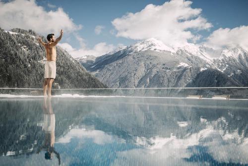 Set in the small village of Finkenberg in the Ziller Valley, the Stock Resort enjoys a quiet location amid the Tyrolean Mountains. It offers a luxurious 5000 m² spa area.