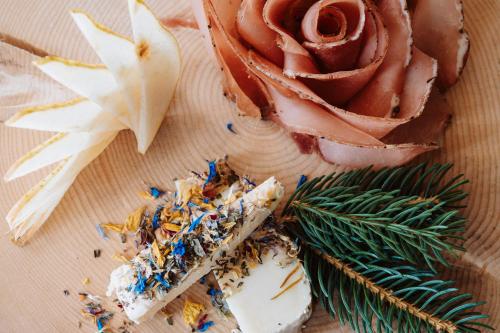 A buffet breakfast consists of sweet and savoury food such as eggs, cold cuts, cereals, homemade cakes and fruit. The restaurant offers local and national dishes for lunch and dinner.
