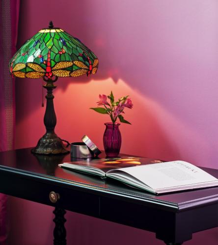 Spacious, boldly decorated room with internet-connected TV, minibar and luxury bedding. The mosaic-tiled bathroom has a bath and shower.