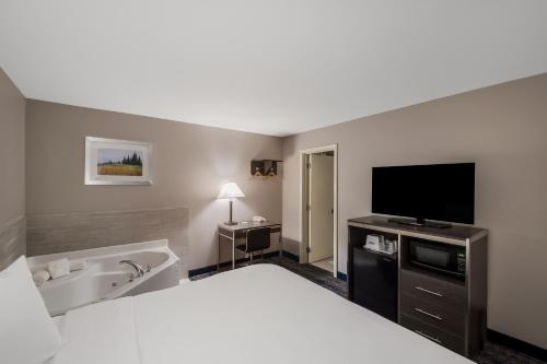This room features a spa bath, cable TV, microwave, and refrigerator.